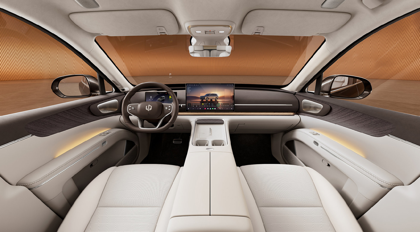 60 英寸高亮全天候 AR-HUD、10.25 英寸液晶仪表 +17.3 英寸中控屏 +6 英寸后排多功能控制屏 +21.4 英寸 3K 电动娱乐屏,具备莱茵低蓝光认证