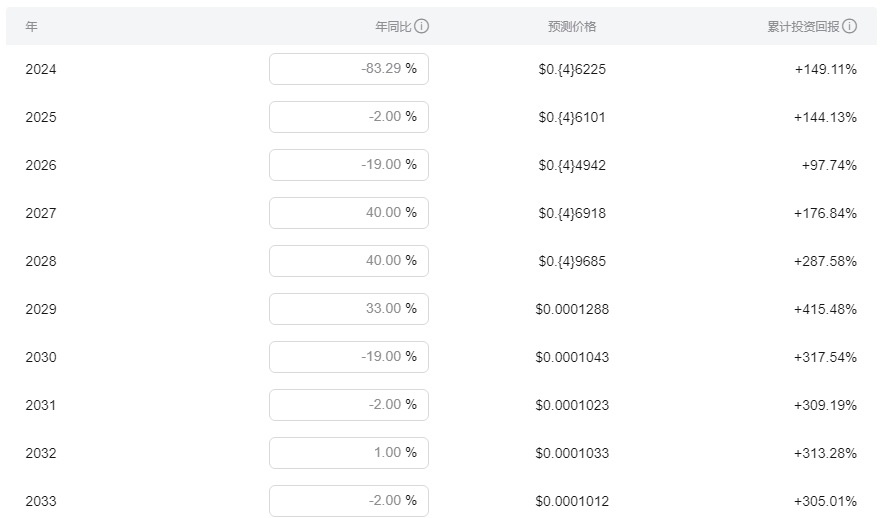 1.2025年目标价:$0.00006101(+144.13%) 2.2030年预期价:$0.0001043(+317.54%) 3.2050年长期展望:$0.0009460