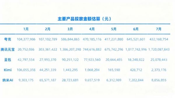 2025年上半年,元宝持续发力推广。AppGrowing数据显示,自今年2月开始,元宝的投放金额一路走高,截止到7月的累计投放额近60亿元。元宝也一度登顶中国区App Store免费App下载排行榜。