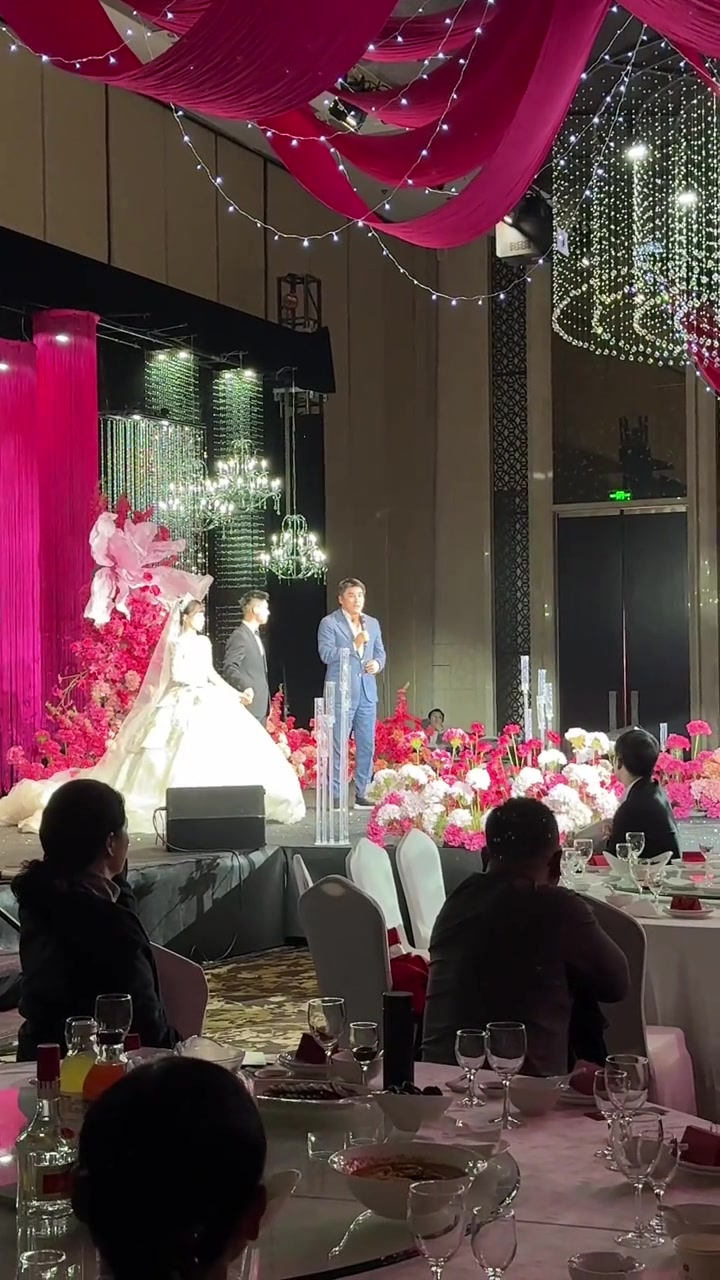 李明在婚礼上表示:“各位嘉宾、各位亲朋好友,大家晚上好,今天非常高兴能受邀来到两位新人的婚礼现场。方昊从2023年转入到北京国安足球俱乐部,通过自己的努力进入到国家队,这也为北京国安俱乐部带来了荣誉。