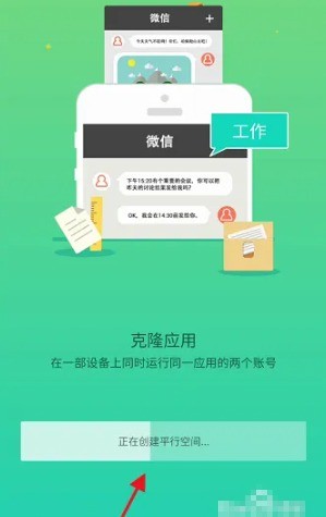 进入平行空间APP,系统自动创建平行空间,创建完成点击开始使用