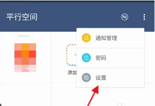 进入平行空间,找到右上方的三点,点击进入