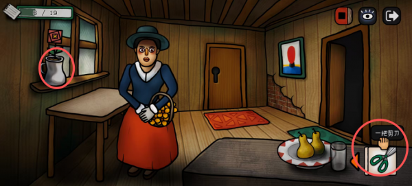 种子种在这个花瓶里,从女人手里获得一把剪刀