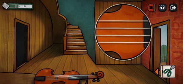 回到这里小提琴按顺序点琴弦,外面的鸟会飞过来,获得一颗蓝宝石
