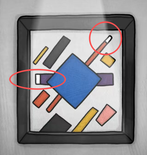 巨匠眼马列维奇图文攻略大全:依次收集方糖、红方块、圆锥、十字石膏等关键道具。通过旗帜组合开门、调节温度计(圆3/十字10/方8)得鱼,用铅笔换斧头草图,结合红方块获得斧头。后续需按电视线索1342点琴弦、调钟至9:05、完成光源拼图、依指南针线索S3W5N4E8开门,最终用虫网捕虫并投入水管,获得黑色球体放入空心圆即可通关。