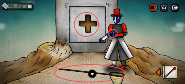 点击这里疯狂旋转的什么东西,停下来,然后再点一下,获得一块黑色十字