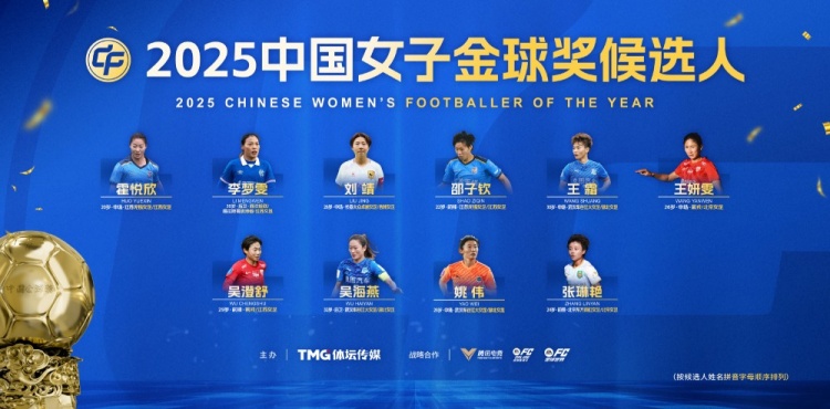 2025中国女子金球奖10人候选名单:王霜、张琳艳领衔,霍悦欣入选