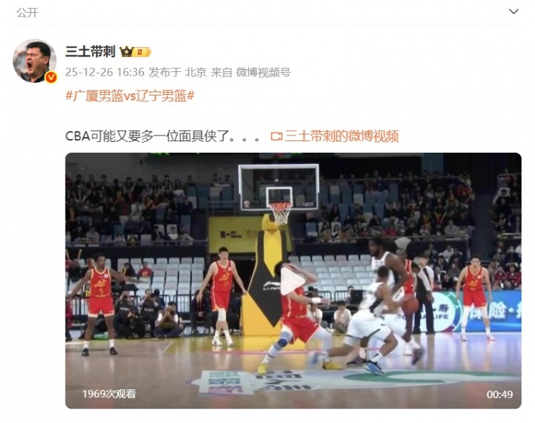 昨天广厦主场96比64击败辽宁的比赛中,孙铭徽在一次防守中被打到鼻子。