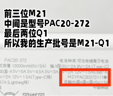 所有型号信息均可直接在充电宝底部铭牌找到,操作非常简便: