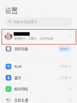 2. 在设置菜单顶部,点击已登录的小米账号区域。