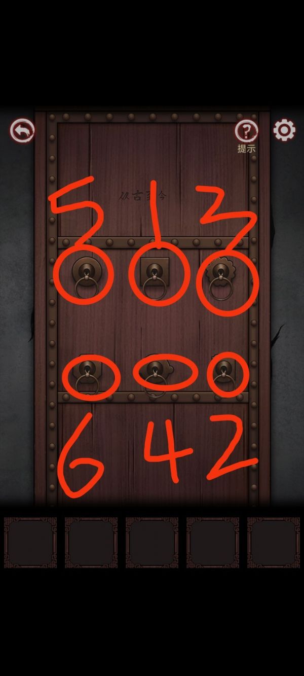 2、看椅子里面影子形状和上面标签汉,唐,宋,元,明,清,门上写了从古到今顺序,拉门上拉环。