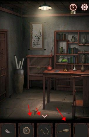 7、拿到钩子,放大镜等,然后每个房间用指南针,得到线索,回到书房,看到那个柜子,五三八四,得到绳子和手臂,钩子绳子组合绳钩。