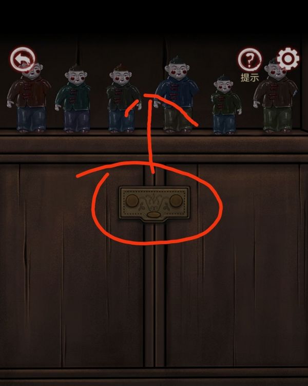 1、注意看墙上图形,解开之后进入古董店,把陈列室灯打开。