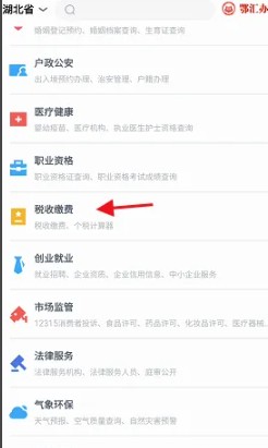 实名认证完毕后,找到左下方首页右侧的的便民点击进入,找到税收缴费点击进入