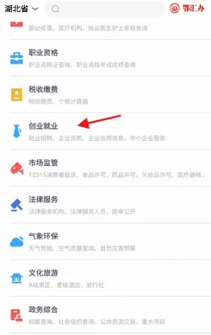 实名认证完毕后,找到左下方首页右侧的的便民点击进入,找到创业就业点击进入