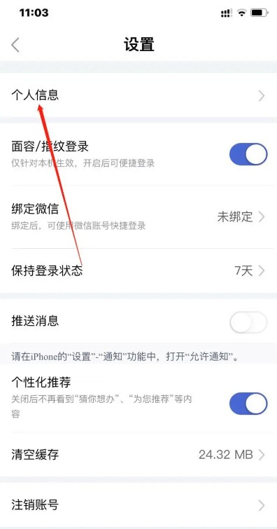 点击【个人信息】