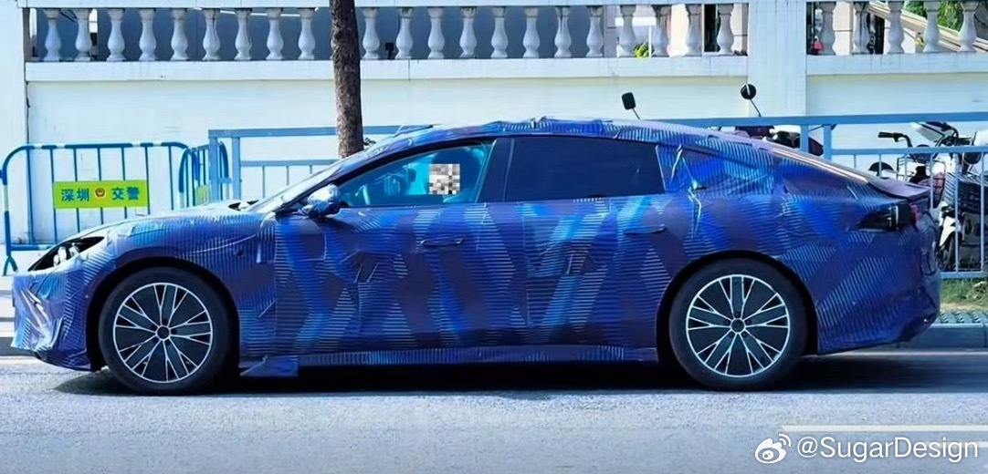 12 月 27 日消息,今天上午,博主 @SugarDesign 晒出了一组比亚迪方程豹首款轿车的路试谍照,新车覆盖了蓝色的伪装车衣。从目前已知的消息来看,新车预计命名为“镁 9”。