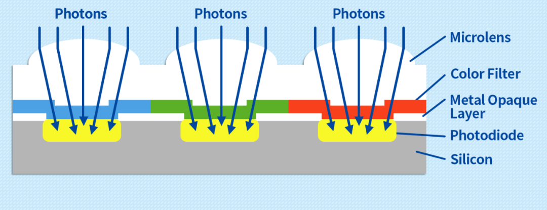光子进入相机后,会激发出电子,电子会产生电压,相机再把电压转换成对应的亮度值,一张照片基本就产生了。