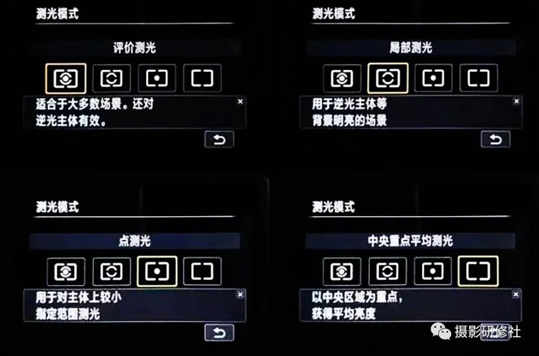 不同的测光区域,对应着不同的测光模式。