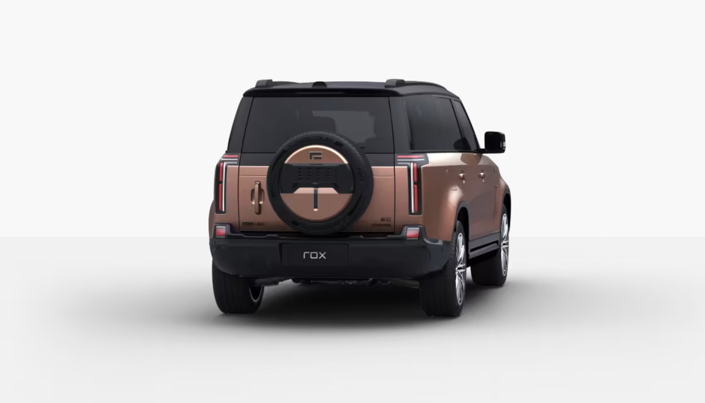尾部方面,新车带有可选装的外挂式备胎,挂上之后整车线条显得更加硬朗,配备倒 L 字形刹车灯,尾门则采用侧开设计,把手位于左侧。