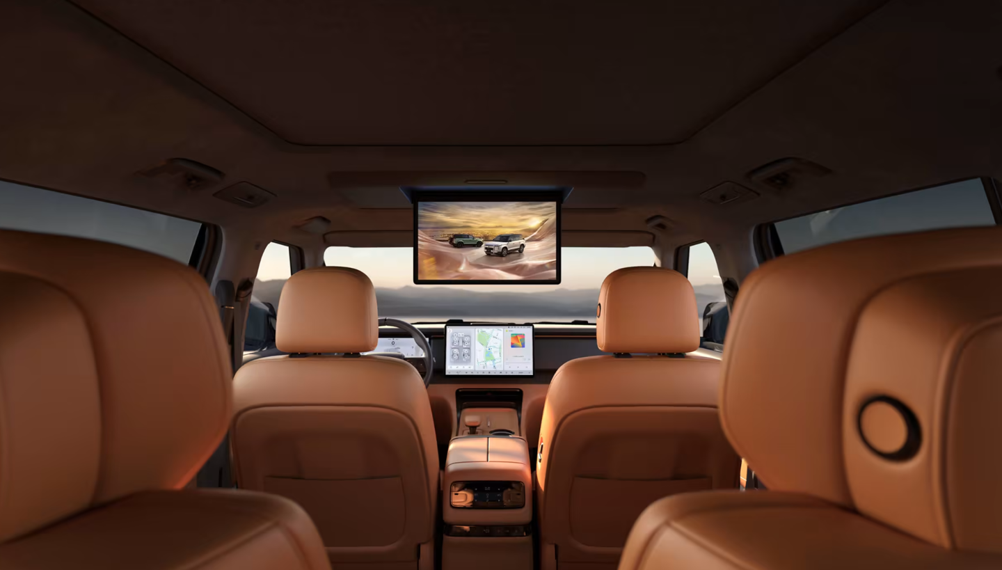 来到车内我们可以看到,新车延续了极石 01 的整体设计,配备 15.7 英寸悬浮中控屏和 12.3 英寸液晶仪表,全车门均采用电吸门设计,配备 Nappa 皮革座椅,支持通风、加热等特性,后排座位还可选用 15.7 英寸 3K 娱乐屏。