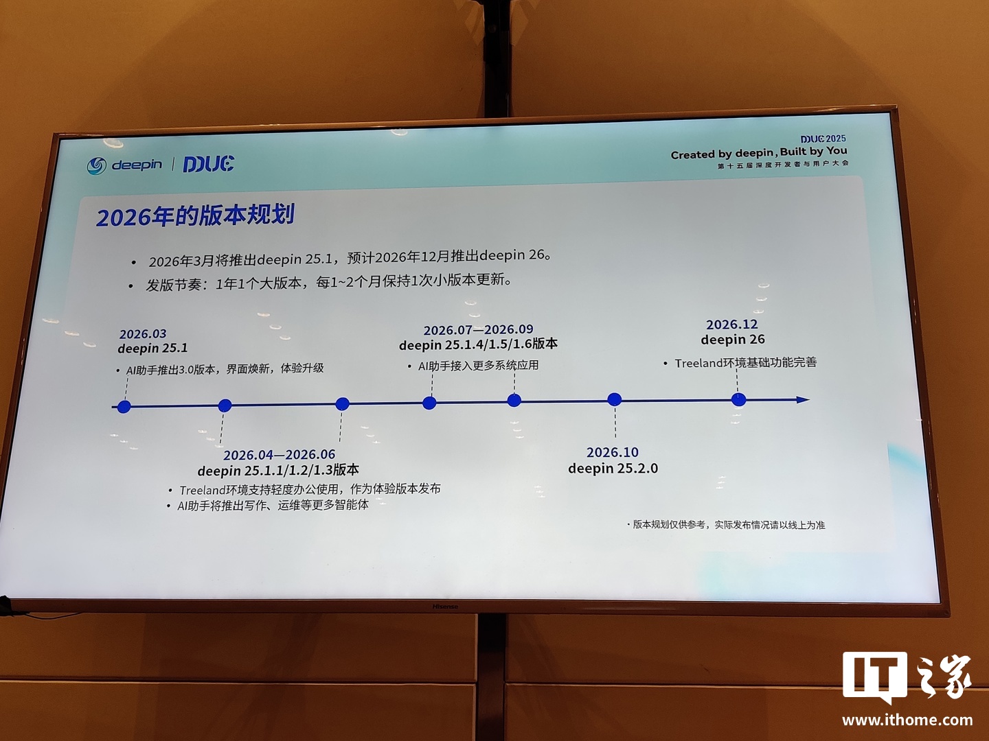 12 月 28 日消息,在昨日举行的 DDUC 2025 第十五届深度开发者与用户大会上,deepin 操作系统官方公布了 2026 年的版本规划。