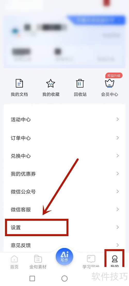 - 打开手机新华妙笔应用,进入我的页面,点击设置选项进行操作。