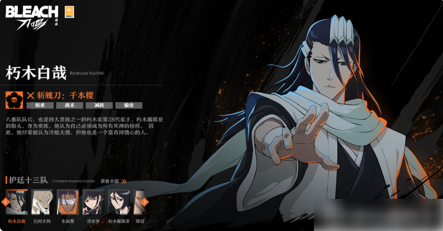 境界刀鸣朽木白哉是战术型副C,以光阵控制、印记减抗为核心,既能前台控场输出,又能退居后台持续赋能队友。玩好境界刀鸣朽木白哉的关键,是掌握“技能衔接-印记叠加-角色切换”的循环。