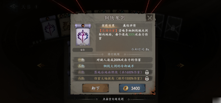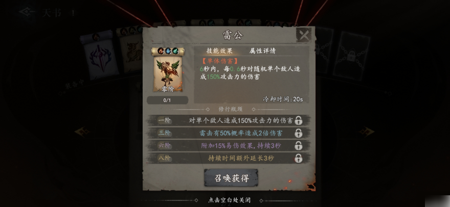 天书的释放条件需要满足足够的元素符文,对应元素符文的个数在天书图标上方有显示,元素符文分为火、水、土、风四种。