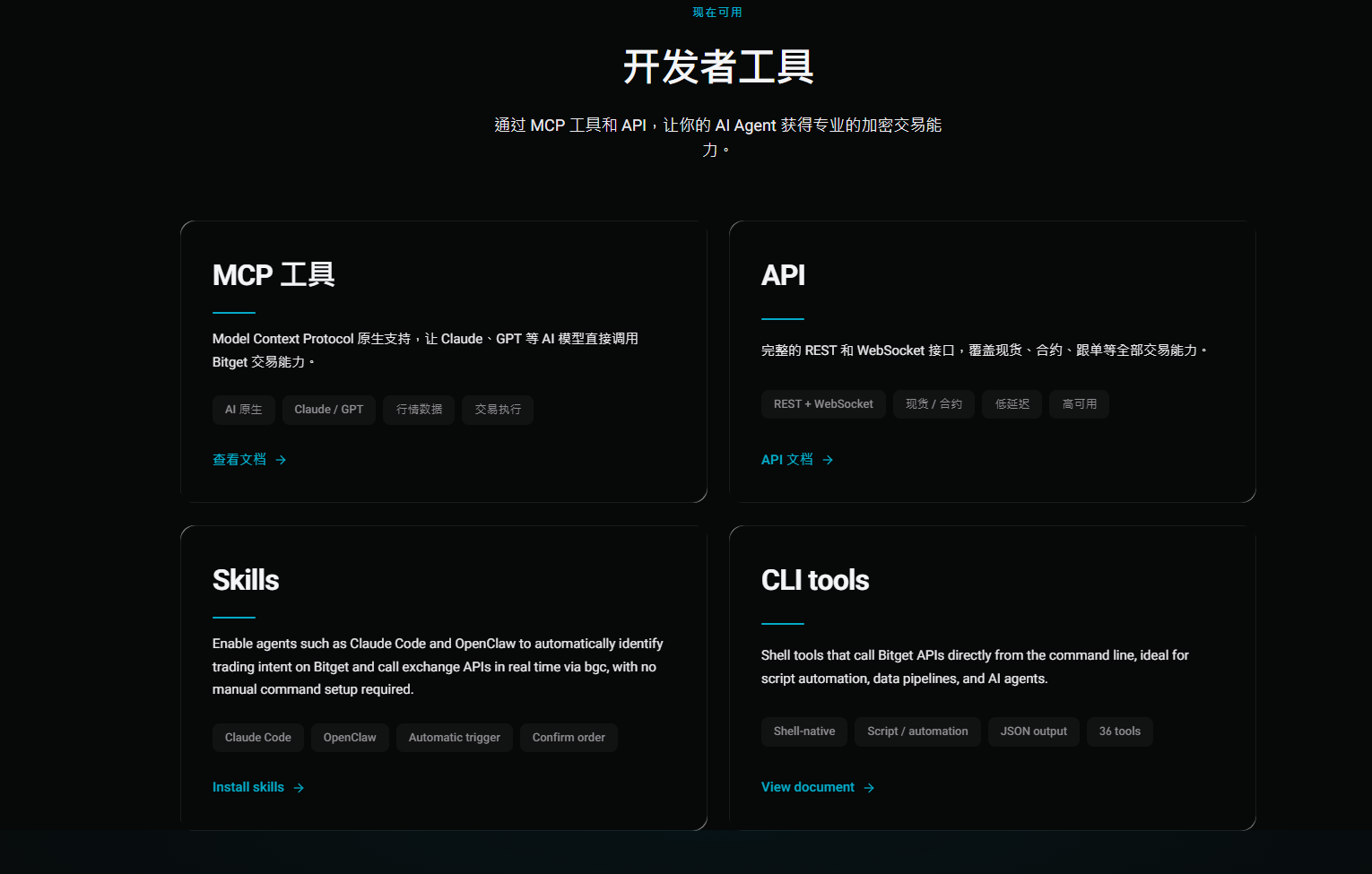 这三个产品形成了一个清晰的递进关系:GetAgent打磨了底层的MCP能力,沉淀到Agent Hub中对外开放,又把这些能力嵌入GetClaw,降低到最低使用门槛。从聊天机器人到开发者工具再到一键式产品,Bitget的AI产品线覆盖了从极客到小白的全部用户光谱。