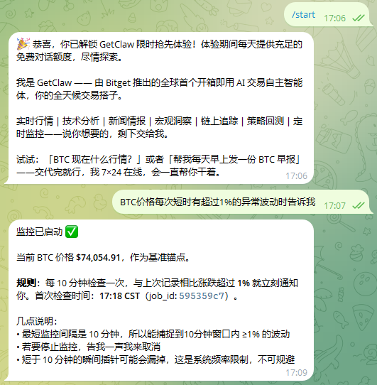 GetClaw上线不到40个小时,盯盘提醒就成了最爆发的使用场景。这并不意外,在传统平台上配置盯盘预警,用户需要理解各种指标参数,“配半天还不一定成功”。而现在,即使是MACD、CCI这类多指标复合盯盘逻辑,用户用自然语言描述需求,系统就能帮你实现。