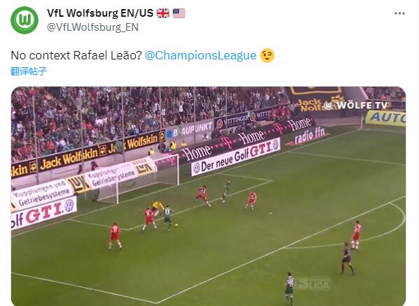 9月20日讯米兰0-0战平纽卡的比赛,莱奥一次精彩过人却脚下拌蒜摔倒引发热议。沃尔夫斯堡英语官推晒出格拉菲特此前进球,调侃莱奥。
