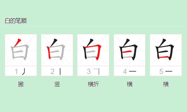 白的笔画顺序是撇,竖,横折,横,横。
