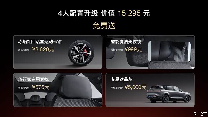 后驱环游版首销期售价21.99万元,四驱探索版首销期售价24.79万元。此外,还将提供4大配置升级,价值15295元,包括四活塞运动卡钳、美妆镜、套枕以及专属钛晶灰车漆。