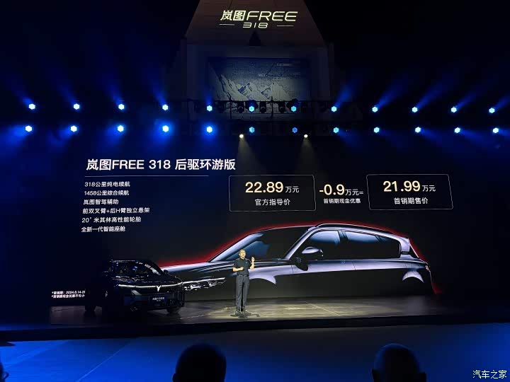 6月14日,岚图FREE(参数|询价) 318车型正式上市,新车共推出2款车型,售价区间22.89-26.69万元。新车在现款车型的基础上增加了全新的配色并将纯电续航一举提升至318公里,如此的续航里程在增程式车型中也算是绝对的第一梯队了。