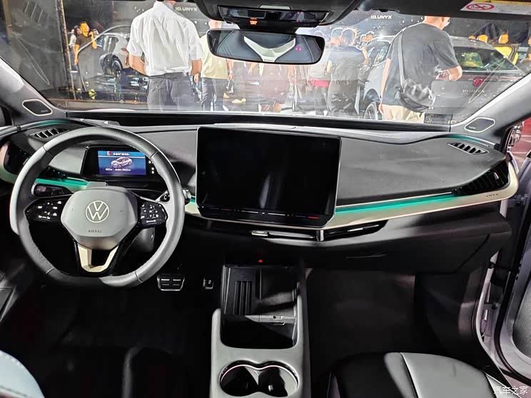 外观来看,ID.UNYX与众是首款配备金色大众LOGO的车型。车头拥有贯穿式LED灯带,两侧配备IQ.Light智能矩阵式LED大灯,三角形的灯组让新车的眼神看起来十分犀利。该车还拥有十分张扬的熏黑前包围,两侧配备导流槽设计,进一步增加运动感。