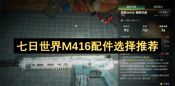 在《七日世界》的枪械系统中,M416“静默归途”以其高达750的射速和冰冻异常特效成为副武器首选之一。尽管基础攻击仅为192,但在配合暴击与异常伤害属性后,能打出极强的控制与输出节奏。本篇攻略将围绕该武器的定位,推荐适配的配件组合与装备思路,希望能够帮助到各位。