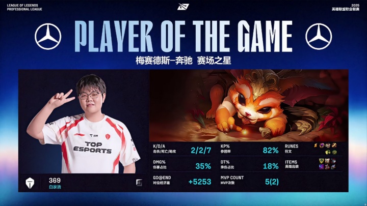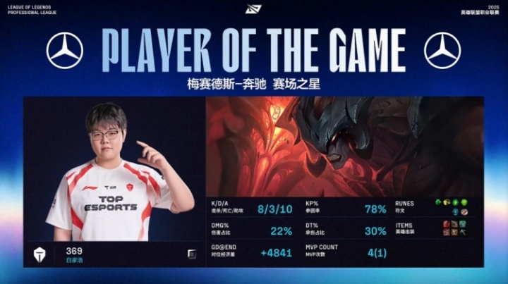 9月20日讯 今日LPL季后赛败者组决赛上,TES以2-1的比分领先,而3局比赛中369在第一局使用剑魔和第三局使用纳尔拿下对局MVP!