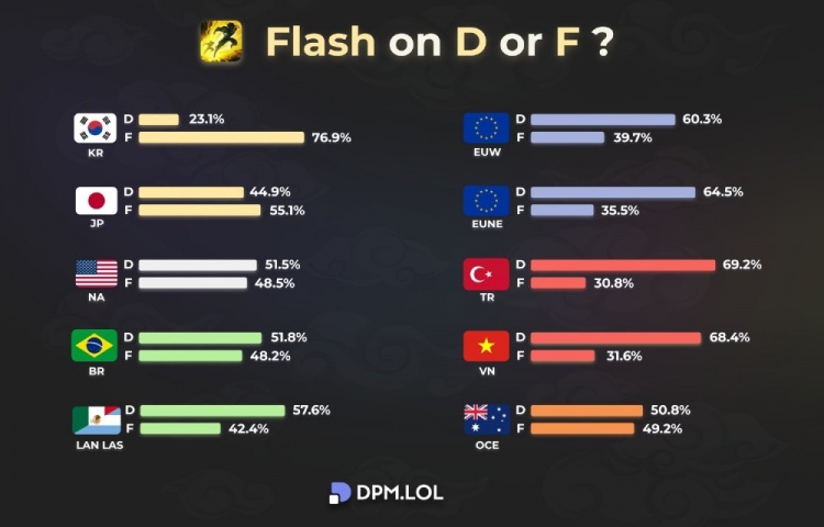全球各大服务器D闪F闪玩家比例:韩服日服F闪多 欧洲越南等D闪多