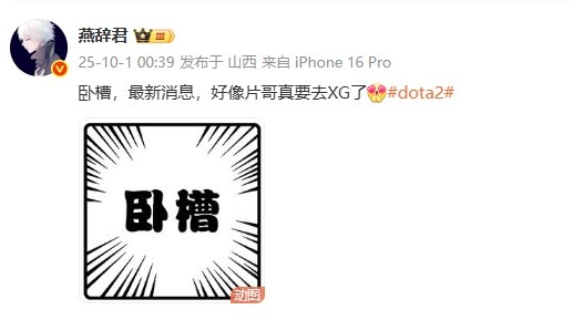 10月1日讯 DOTA2博主爆料,fy新赛季去XG;