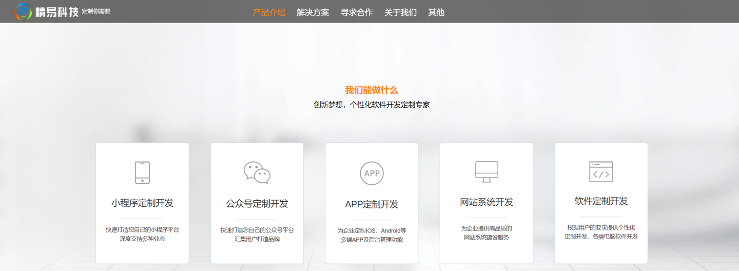揭阳市揭东区精易科技有限公司官网显示,该公司目前的主要产品是各类小程序、公众号、App、网站系统、软件定制开发。