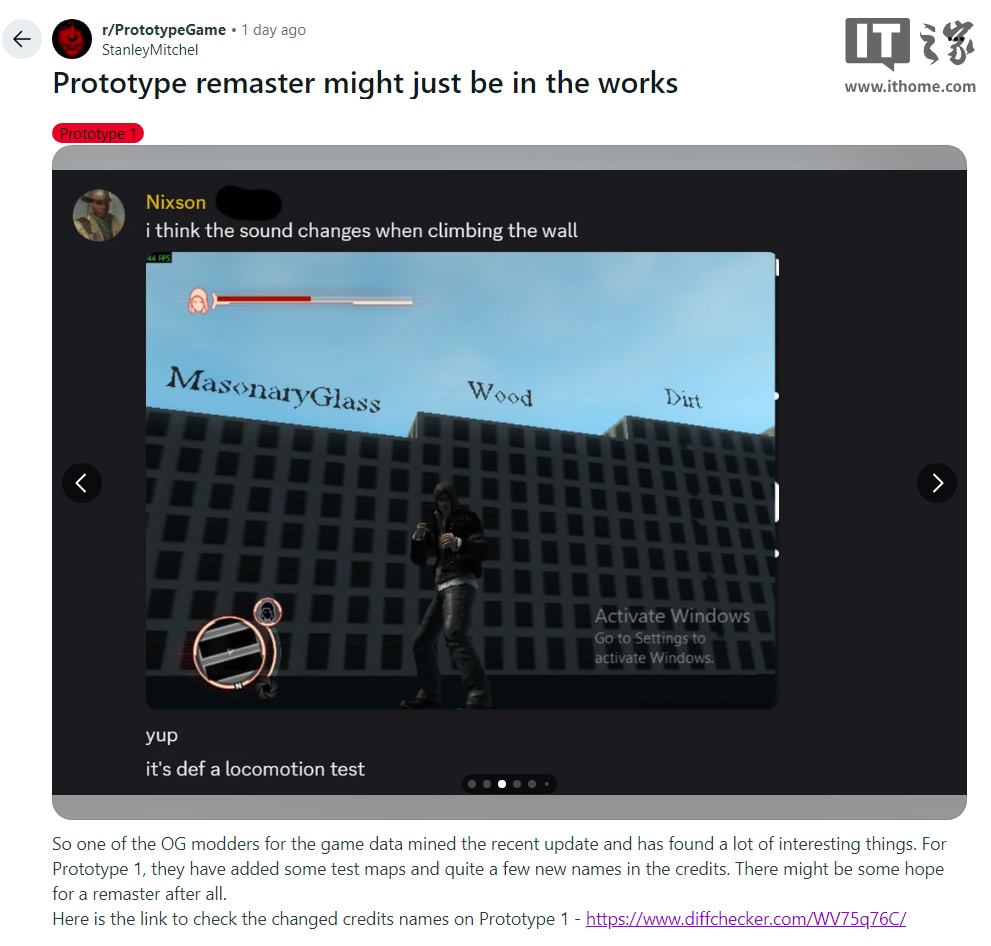 Reddit 论坛的网友表示,游戏数据的一位 Mod 开发者对更新进行了挖掘,发现了很多有趣的东西。《虐杀原形》添加了一些测试地图,并且在鸣谢名单中增加了一些新名字。看来,remaster(复刻版)终究还是有可能的。