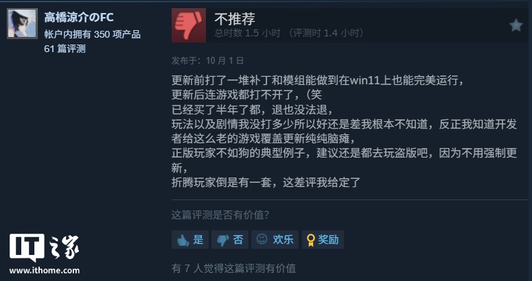 注意到,游戏更新后,有玩家表示之前打的补丁和 Mod 都无法使用,甚至游戏也无法打开了。