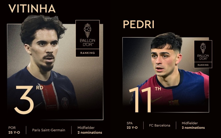 10月02日讯 欧冠联赛阶段第2轮,巴萨主场1-2遭巴黎逆转绝杀,今年金球排名第11的佩德里(22岁)和金球排名第3的维蒂尼亚(25岁)均首发出战。