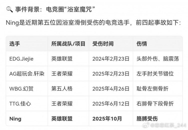 圈内人看Ning王浴室受伤:《电竞圈“浴室魔咒”》竟然都有合集啊