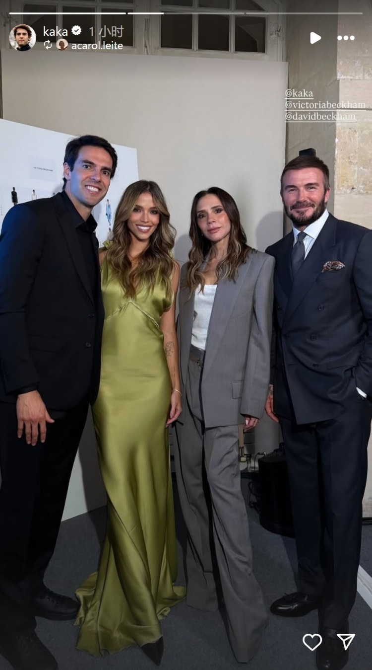 卡卡、贝克汉姆携夫人出席活动,卡卡社媒晒出四人合照。