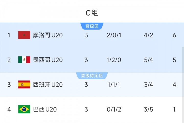 10月05日讯 世青赛(U20世界杯)小组赛最后一轮比赛,巴西U20以0-1不敌西班牙U20,前者出局,后者以成绩最好的4个小组第3之一晋级。