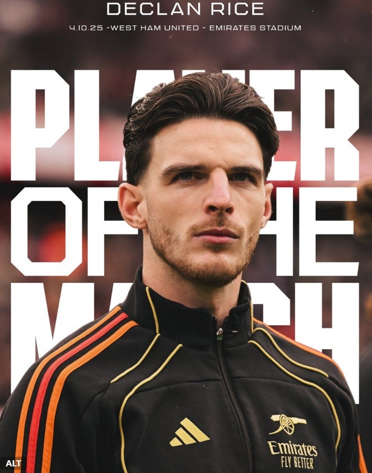 本场比赛赖斯面对旧主发挥出色,为球队在上半场先拔头筹,赛后他也当选阿森纳官方评选出的本场队内最佳球员。