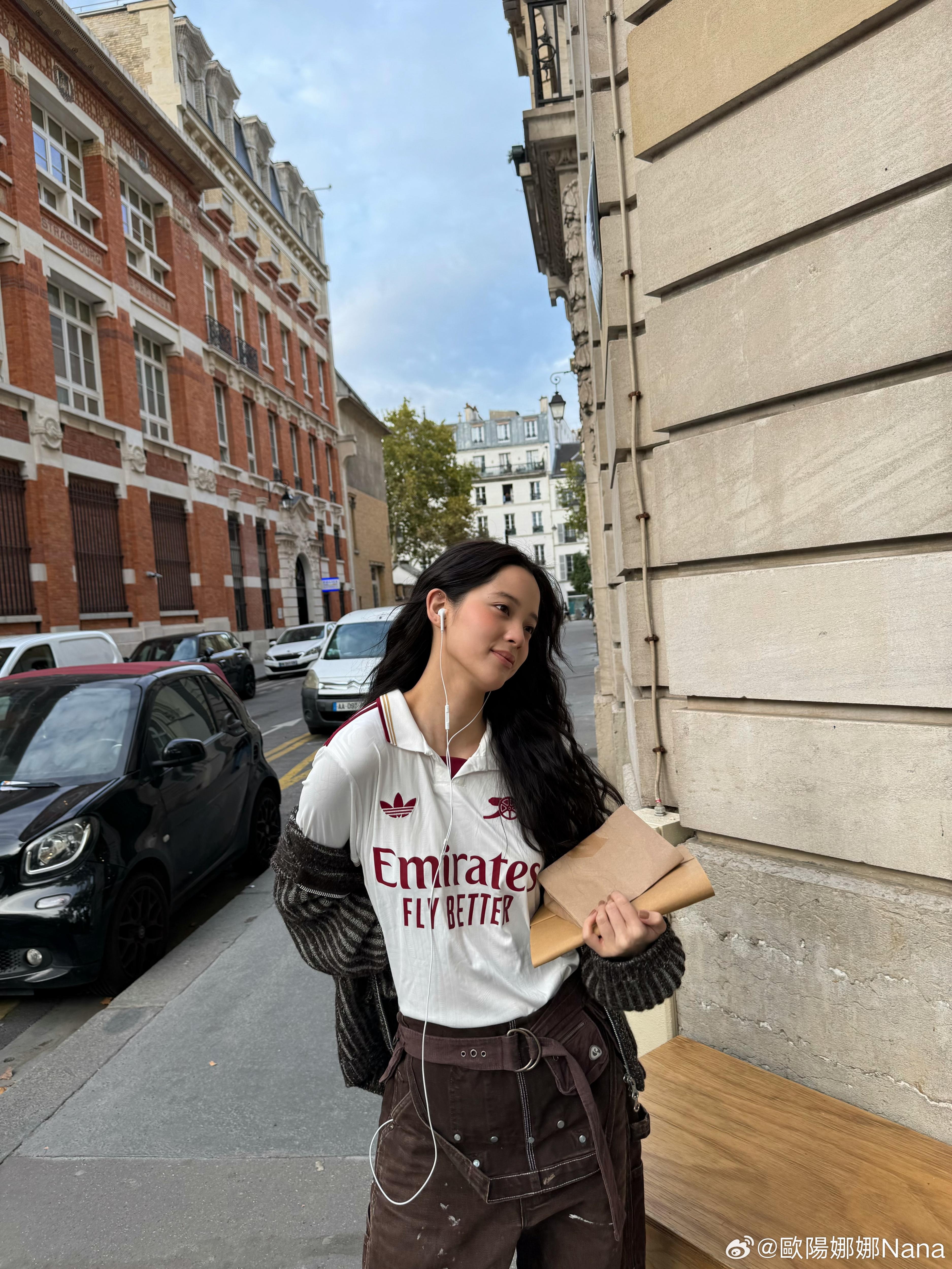 10月05日讯 女艺人欧阳娜娜更新社媒,晒出了自己身穿阿森纳第二客场球衣在巴黎街头漫步的照片。