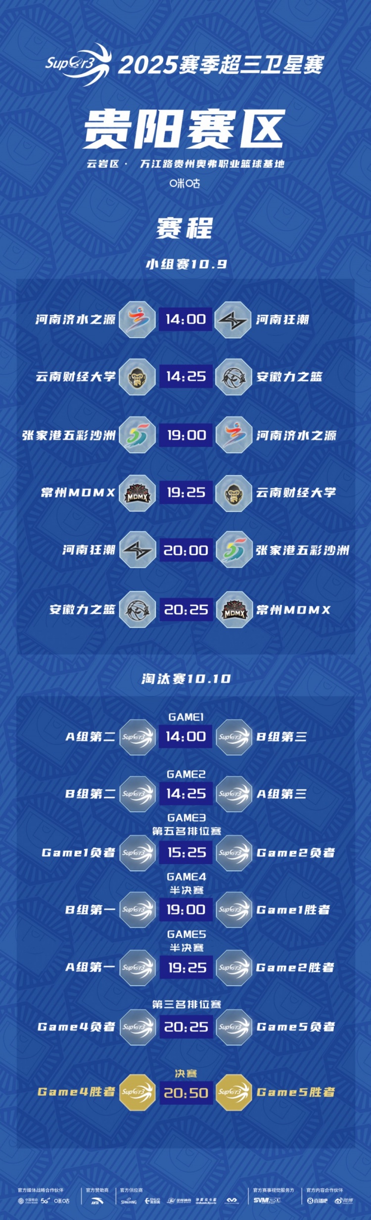 2025赛季中国男子三人篮球超级联赛卫星赛(简称“超三卫星赛”)最后1站比赛赛程发布!本站比赛将于10月9日-10月10日在贵阳赛区举办。